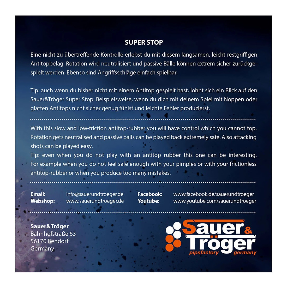 Poťah Yasaka AntiPOWER sa radí medzi antitopspiny. Neutralizuje protivníkov topspin svojimi špeciálnymi tlmiacimi vlastnosťami. Poťah Yasaka AntiPOWER je vhodný hlavne pre hráčov kombinujúcich útočnú a obrannú stranu rakety.