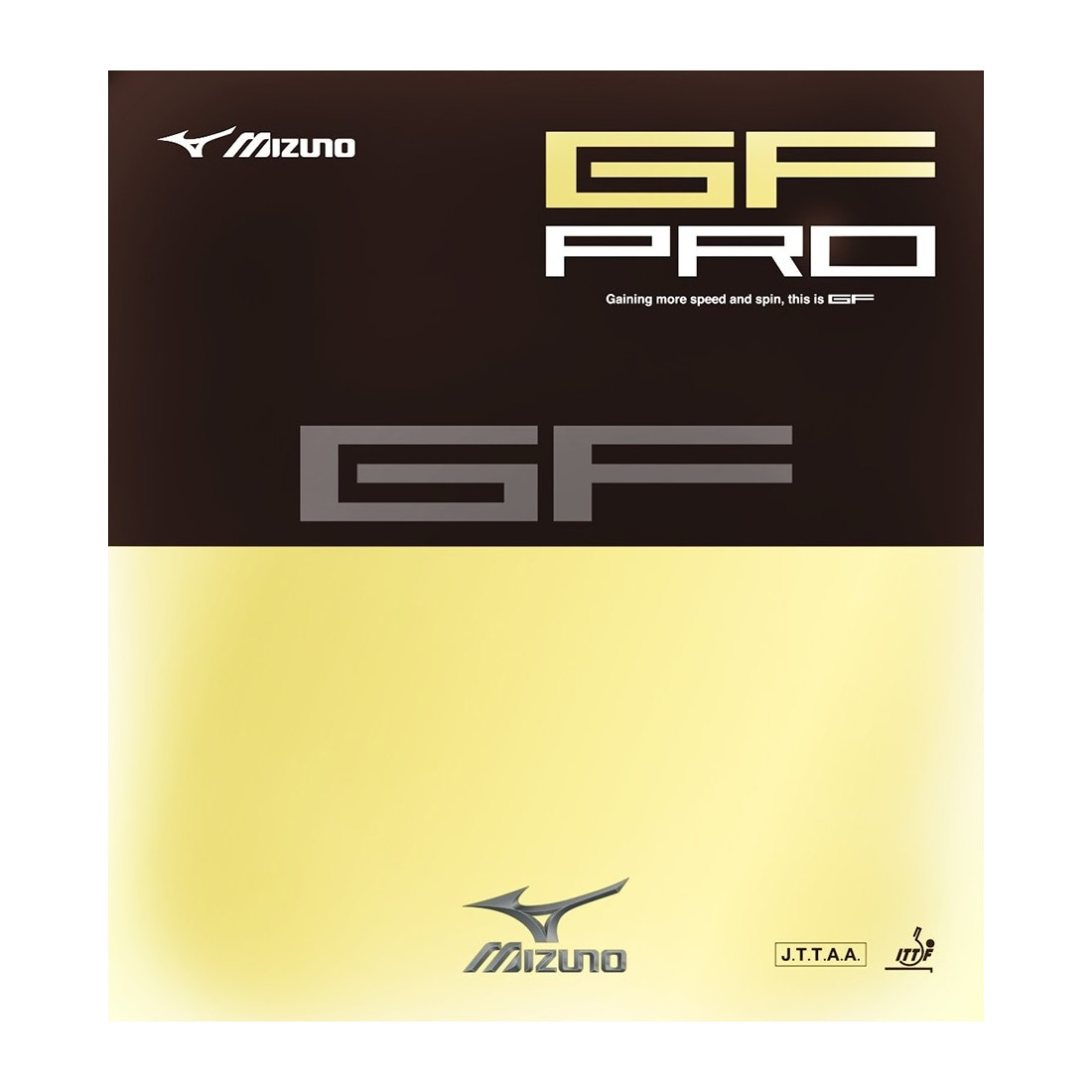 Poťahy Mizuno GF sú moderné tenzory so vstavaným prelepovacím efektom. Topsheet je vyrobený z novovyvinutej gumy, ktorá poskytuje výborný spin a zrýchlenie. V spojení so špongiou, ktorá má menšie a hustejšie vzduchové bubliny ako bežné poťahy, poskytuje väčši grip. Mizuno GF Pro s tvrdosťou špongie 47.5° je optimálnou voľbou pre hráčov, ktorí hľadajú maximálnu rýchlosť pri zachovaní veľkej kontroly.