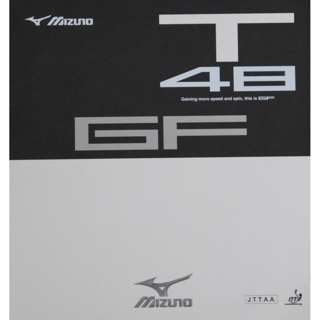 Poťahy Mizuno GF sú moderné tenzory so vstavaným prelepovacím efektom. Topsheet je vyrobený z novovyvinutej gumy, ktorá poskytuje výborný spin a zrýchlenie. V spojení so špongiou, ktorá má menšie a hustejšie vzduchové bubliny ako bežné poťahy, poskytuje väčši grip. Mizuno GF T48 je s tvrdosťou špongie 48° optimálnou voľbou pre dominantných útočných hráčov, ktorý preferujú tvrdý útok pri stole aj vo väčšej vzdialenosti od stola.